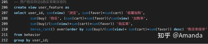 如下語句,通過dense_rank() 窗口函數對對用戶按每次消費時間進行排序,即可得到每個用戶的第n次消費,將字段命名為 n_consume;并用查詢語句新建視圖consume