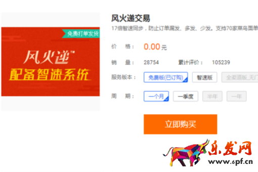 1、購買軟件。在淘寶賣家服務市場搜索“風火遞”,選擇免費版,點擊,支付0.0元,完成購買。