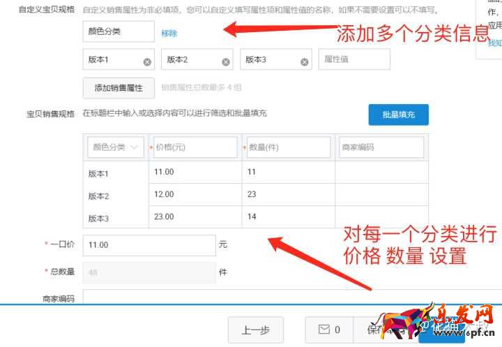 這里呢,大家一定要確認一下 這個細分類目是不是跟參考的寶貝 是的一樣, 有的個別分類是不支持多個規格設置的。
