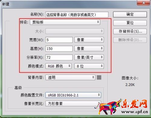 2 新建一個文件按快捷鍵Ctrl+N,在對話框設置名稱。注意:確定一下是不是剪切板的尺寸,無誤點擊確定。