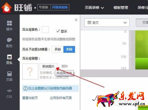 ?2 接下來上傳背景圖在對話框中點擊更改圖片,選擇之前做好的店招背景圖片點擊打開。
