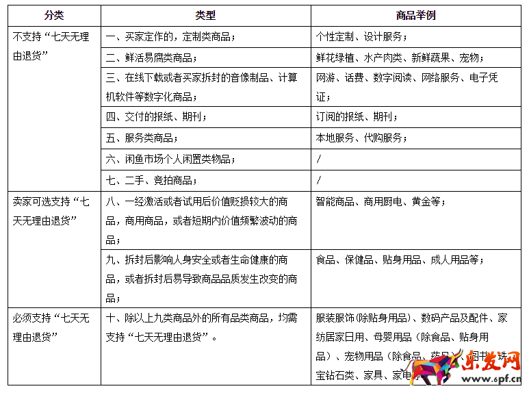 圖1 七天無理由退貨類目表