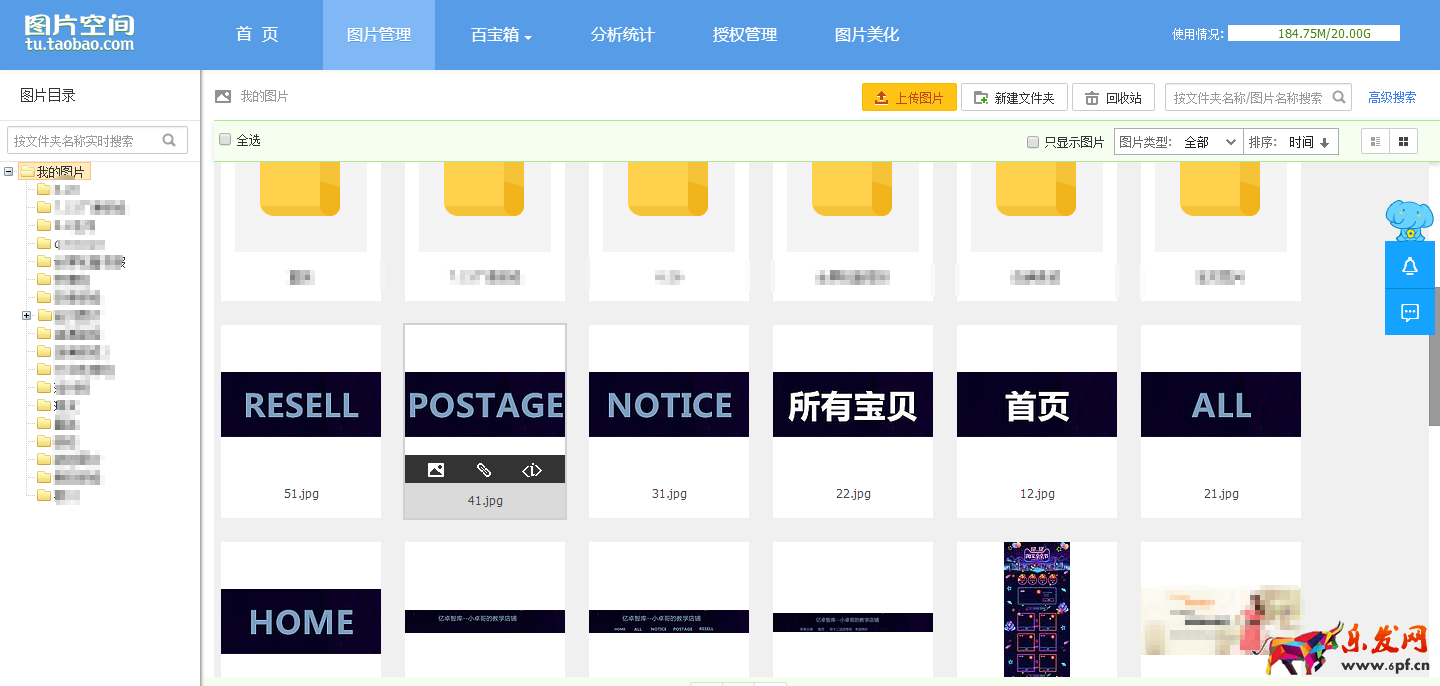 接下來就開始制作吧,首先需要準備一點素材,在上圖中,鼠標每次移動到"HOME"位置后,就會變成“首頁”,那么,這里就要準備兩張圖,還有店招的背景圖,都準備好了,就上傳到自己店鋪的“圖片空間”里面吧。如下圖