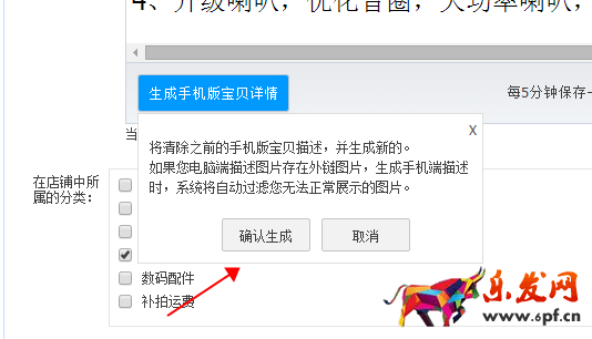 3、找到并點擊生成手機版寶貝詳情,然后并點擊確認(rèn);