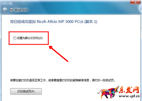7.在“設置成默認打印機”后,整個網絡打印機就設置連接安裝成功了,你現在就可以進行打印測試了(如下圖):