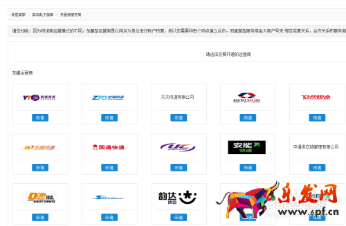 2 進去之后,會看到很多的快遞公司,找到需要合作的快遞商,點擊申請。