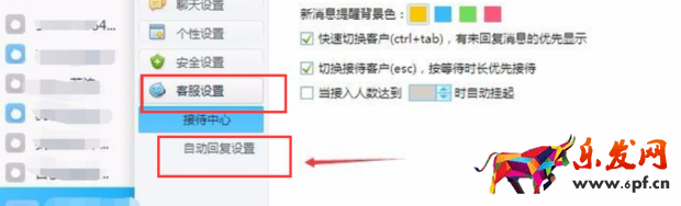 在彈出的界面中選擇“客服設置”- “回復設置自動”