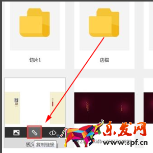8、圖片空間鏈接復制方法,點擊背景圖中的鏈接標志,就可以復制成功。