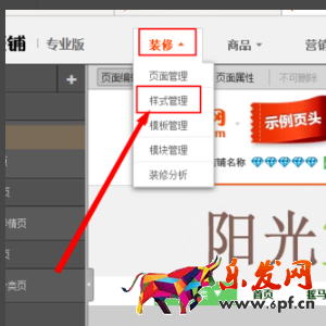 1、進入店鋪中心,店鋪管理找到店鋪裝修,如下圖所示: