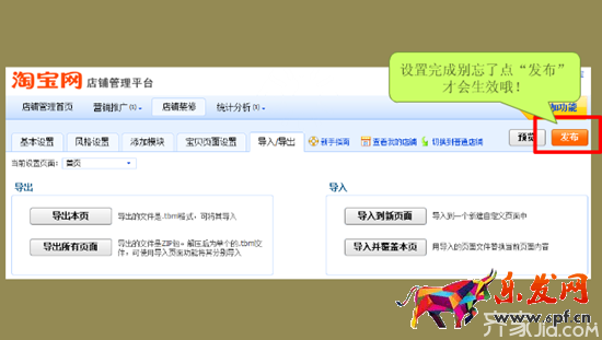 到這里,淘寶網(wǎng)店怎么裝修店鋪已經(jīng)基本講完了,不過(guò),不要忘了最重要的一步哦,點(diǎn)擊“發(fā)布”才能真正的完成裝修。