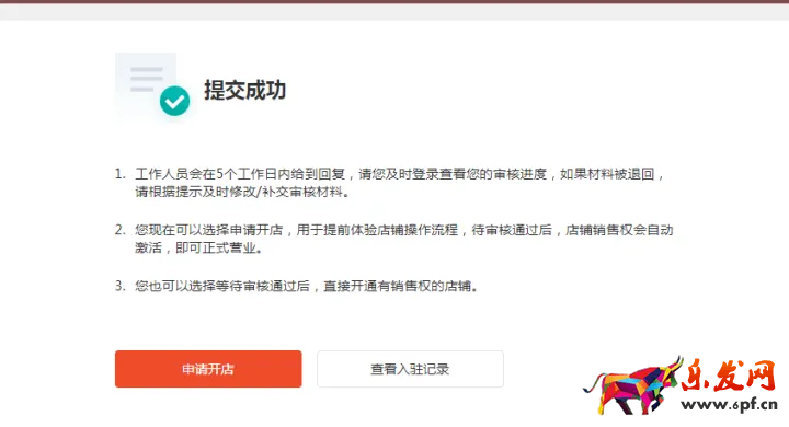 完成到這一步就算申請開店流程完成了,留意一下自己注冊的郵箱,官方審核結果會通過郵件的形式告知,一般5天左右。