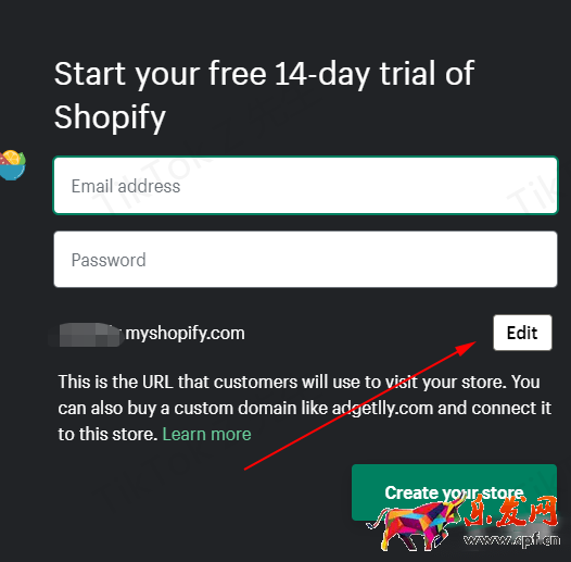 當你在第一步輸入郵箱了后,shopify會自動分配一個二級域名給你。