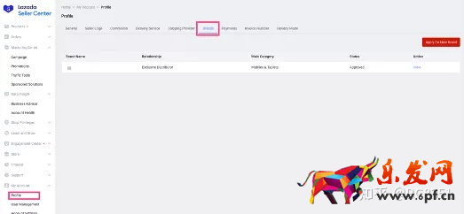 1.進入后臺,選擇“My Account”選擇“ Profile”再選擇 “Brand ”,如果您的賬戶符合資質,您可以在這個頁面提交資料.