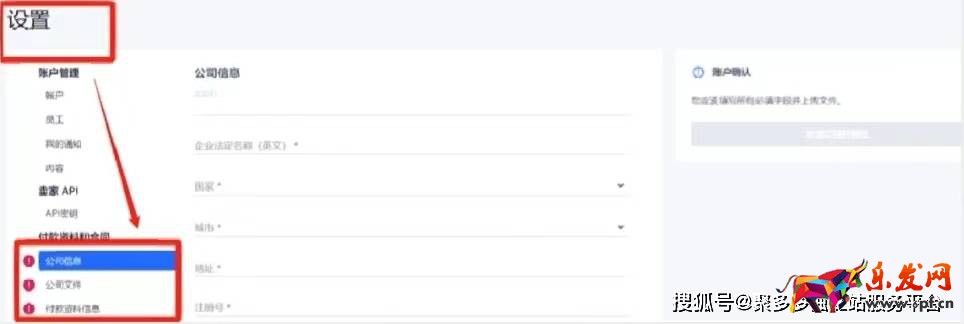 (3)確認后會跳轉至后臺,我們還需要點開設置,左側欄有3個感嘆號,需要填寫完成。