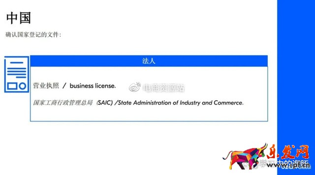 1、 中國大陸或香港公司營業執照(需要中英文版)