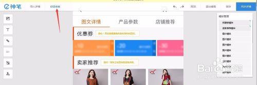 3 在寶貝編輯頁面里,左側是工具欄,右側是模塊管理。如果不太熟悉新版神筆的,可以切換到老版的神筆,老版的神筆有個比較強大的功能是可以添加熱點。本次我們側重介紹神筆的老版。點擊切回老版。