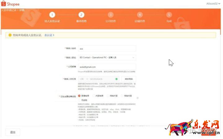 4. 聯(lián)系信息:店鋪需要的聯(lián)系方式基本上是手機號碼和郵箱地址。但是,這里需要注意的是,您提交的關于shopee的信息不能與其他商店的相同。也就是說,這些信息只能使用一次。 二。