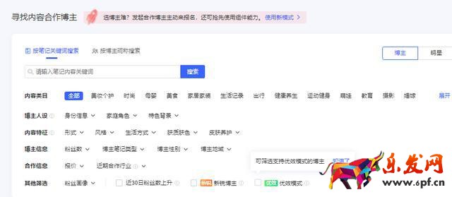 以下為小紅書蒲公英官網(wǎng)內(nèi)容合作博主界面展示: