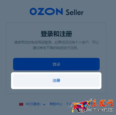 打開ozon的注冊頁面,點擊左下角可以切換成中文,點擊注冊。
