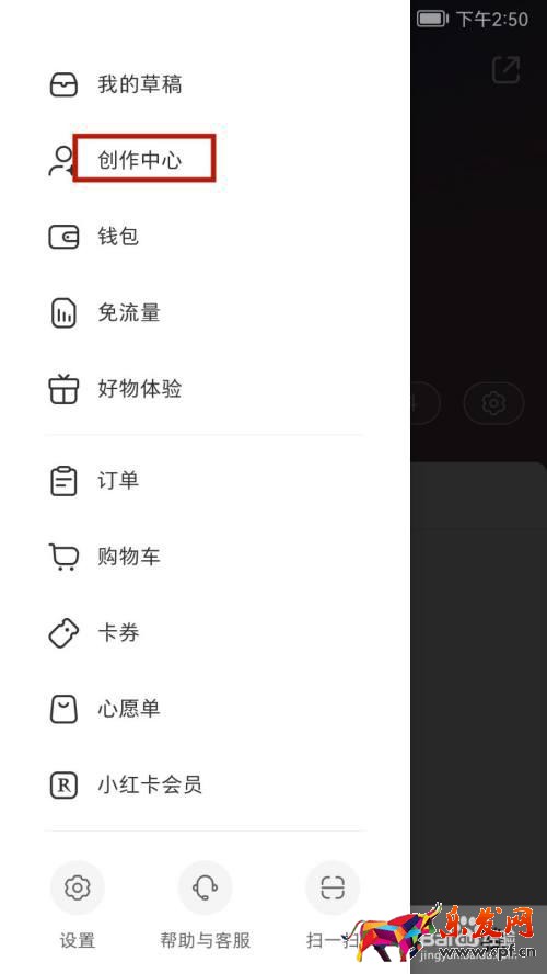2 打開(kāi)左傾欄點(diǎn)擊創(chuàng)作中心選項(xiàng)