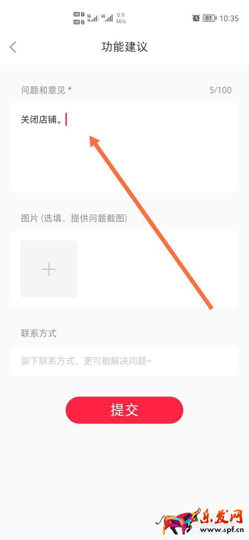 3 最后在意見反饋界面輸入關閉店鋪,然后點擊下方的提交即可。
