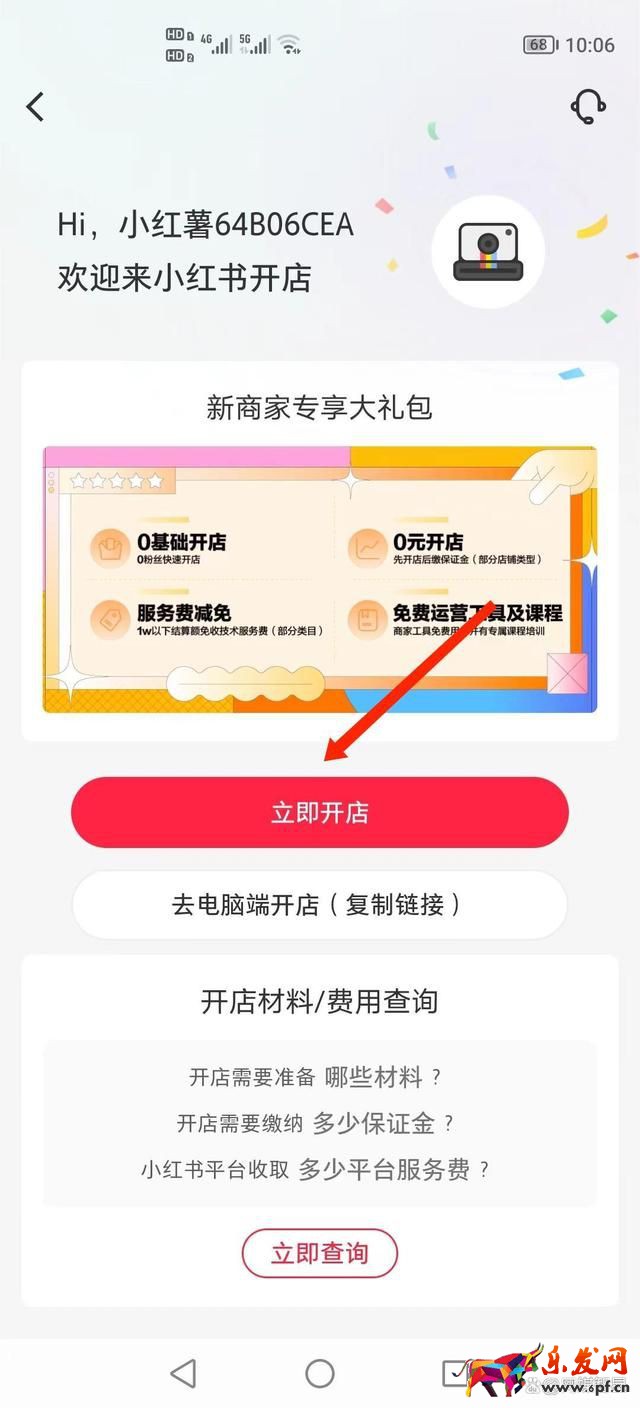5、點擊“立即開店”。