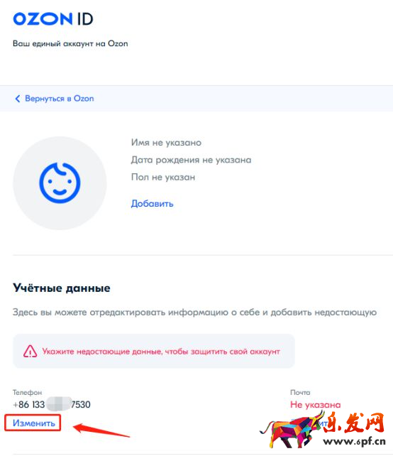 點擊右上角設置,跳轉至配置文件設置,點擊OZON ID模塊中的數字進入管理頁面,點擊電話號碼旁邊的更改,然后輸入驗證碼,并使用新的電話號碼進行更改確認。