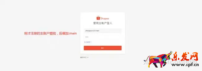 5、然后寫入驗證碼,編輯完后立即登錄,就是剛剛注冊的主賬戶和密碼,記得主賬戶的后綴:main;