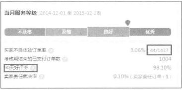 從這個(gè)賣家的當(dāng)月服務(wù)等級(jí)來(lái)看,買家不良體驗(yàn)訂單數(shù)占比較大,好評(píng)率及賣家責(zé)任裁決率都在可控范圍之內(nèi),那么我們來(lái)看看這個(gè)賣家的指標(biāo)詳情。