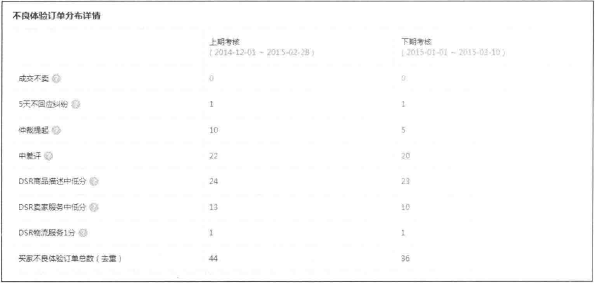 在這些詳細(xì)的指標(biāo)中我們發(fā)現(xiàn):DSR商品描述中低分訂單高達(dá)24個(gè),我們可以這樣推算一下,如果買家在評(píng)論我們的產(chǎn)品時(shí)給了差評(píng),那么這個(gè)買家給DSR商品打的肯定是低分。但是中差評(píng)的訂單個(gè)數(shù)小于DSR商品描述低分則說(shuō)明,即使給了買家好評(píng)的賣家,在DSR匿名評(píng)分中也可能得低分。