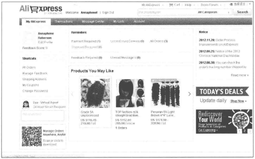 首先,我們來看看買家的賬戶頁面都有什么內(nèi)容。