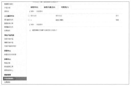 (1)在“賣家后臺(tái)”一“產(chǎn)品管理”—“模板管理”頁面中,可以找到“產(chǎn)品信息模塊”的入口。在這里可以對(duì)產(chǎn)品信息模塊進(jìn)行管理操作。