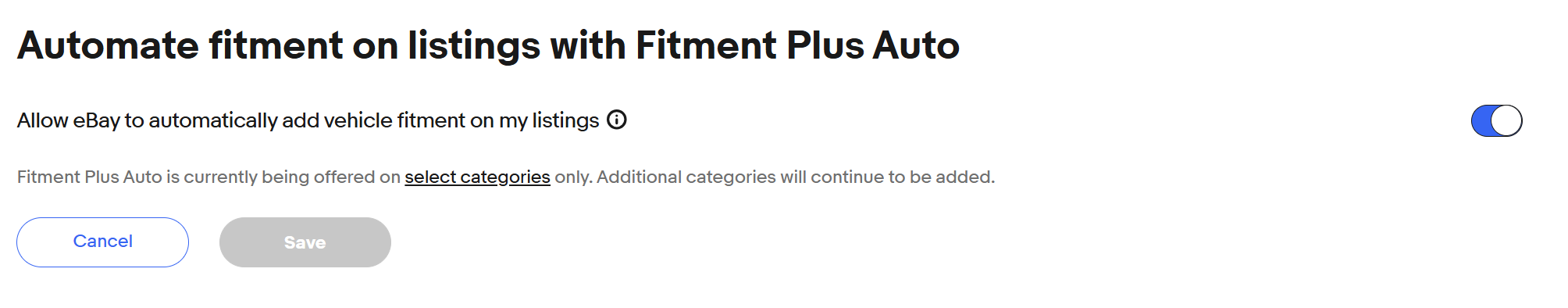Fitment Plus Auto 目前只可用于特定分類。eBay 計劃將Fitment Plus Auto擴展至其他分類。
